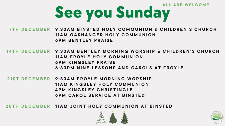Please note that from November, there will not be any Binsted 8am Holy Communion services. This is temporary due to the low light levels and chilly weather during the winter months. We aim to restart these in the spring.