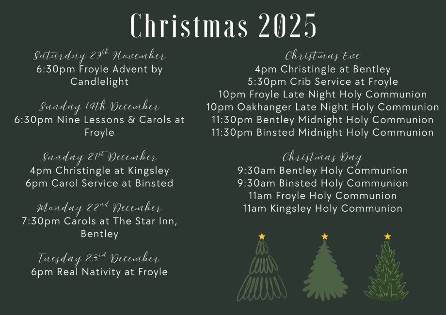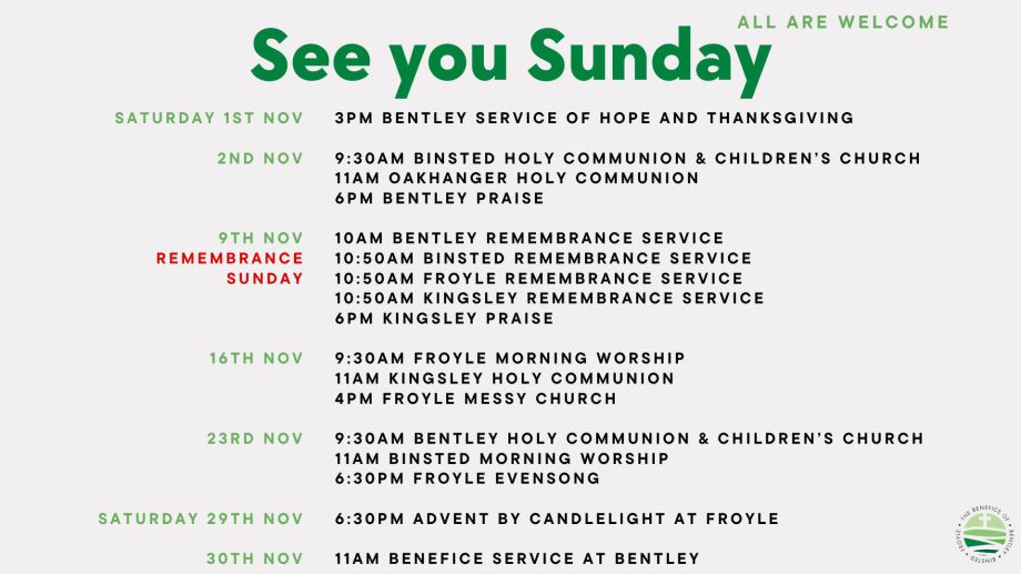Please note that we have temporarily suspended Binsted 8am Holy Communion services during the winter months - we aim to start these up