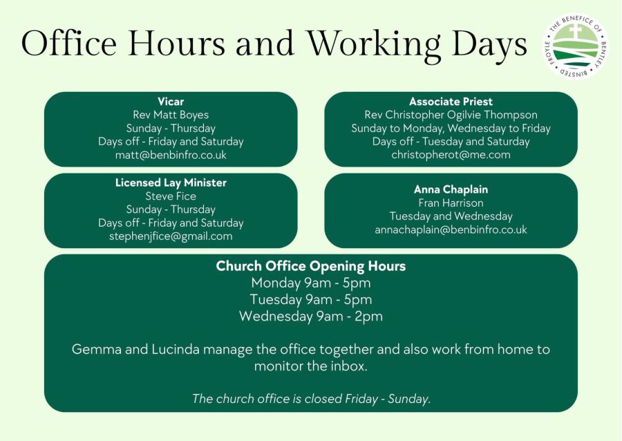 annachaplain@benbinfro.co.uk or call 07765058593